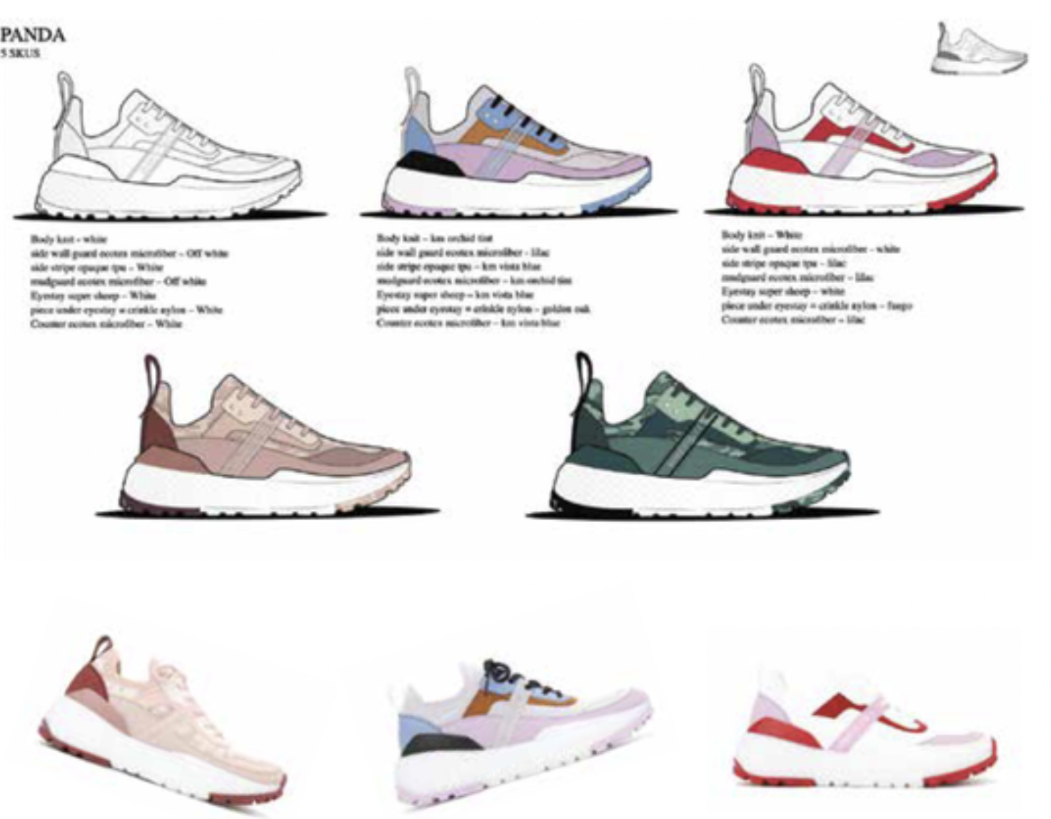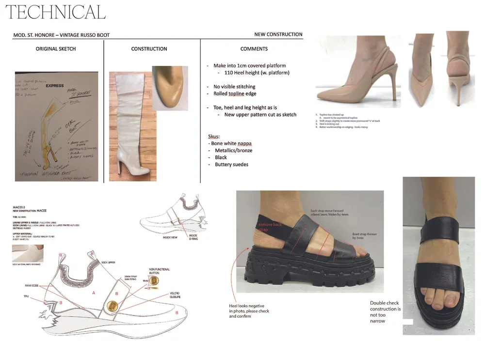 I mainly sketch via adobe illustrator of 2d side views for factory technical specs. For brainstorming and quick sketches to work out ideations I will sketch by hand or by procreate app on my ipad. Technical and fit comments made via images from factories for early prototypes and blueprint sign offs and in person fit sessions.